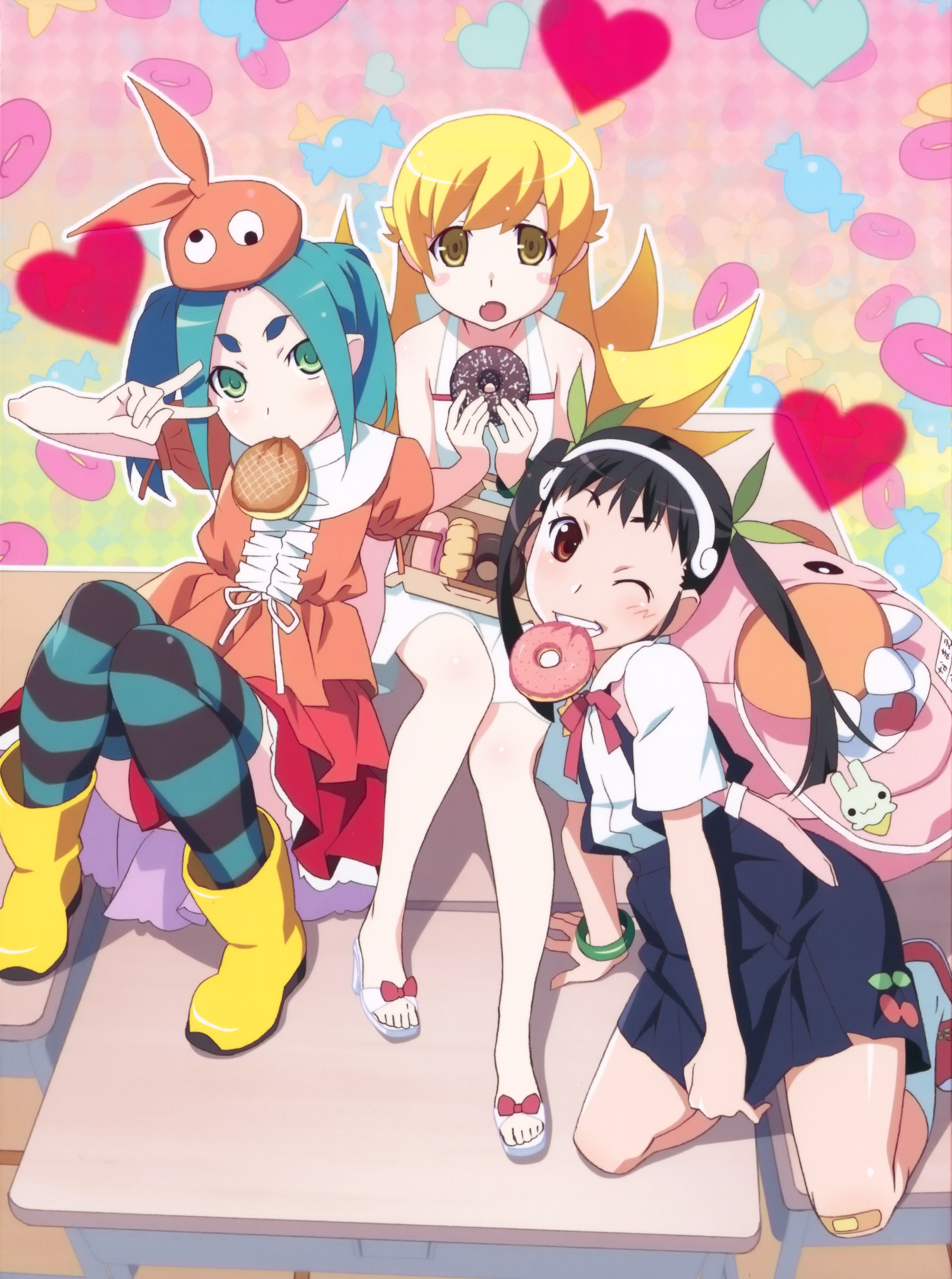 Immediately following the events of Kabukimonogatari, Araragi and Hachikuji begin having run-ins with a near-indescribable void, which seems to be pursuing them for reasons they cannot determine. The answer to the question, and the solution to their predicament, lies in the memories of Shinobu and the insight of literal know-it-all Gaen Izuko.